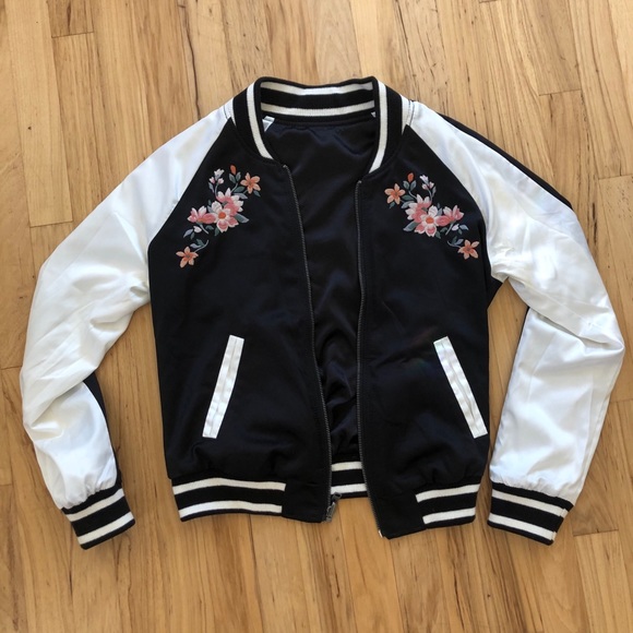 Jackets Coats Reversible Black With Pink Flowers Bomber Jacket Poshmark